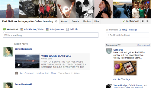 We decided to tap the Community promise of Social Media to invite more input from interested people. To that end, we formed a Facebook group, entitled First Nations Pedagogy for Online Learning. To date, 37 people have joined the group, but there is certainly room for many more! If you are a Facebook member (or are open to becoming one), please join our Group, and add to the discussion!