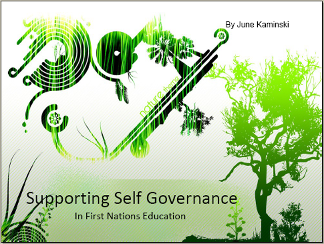 The Aboriginal peoples of North America had their own systems of formal education prior to Colonization - systems which were highly successful. Self Governance in education requires the development and implementation of sustainable educational systems under the full control and jurisdiction of aboriginal people based on the recognition of inherent hereditary and treaty rights, and under international law. To make Self Governance in Education a reality, several processes need to be put into place, including sustainable funding, the preparation of aboriginal educational leaders, and the development of educational systems that meet the needs of each community.